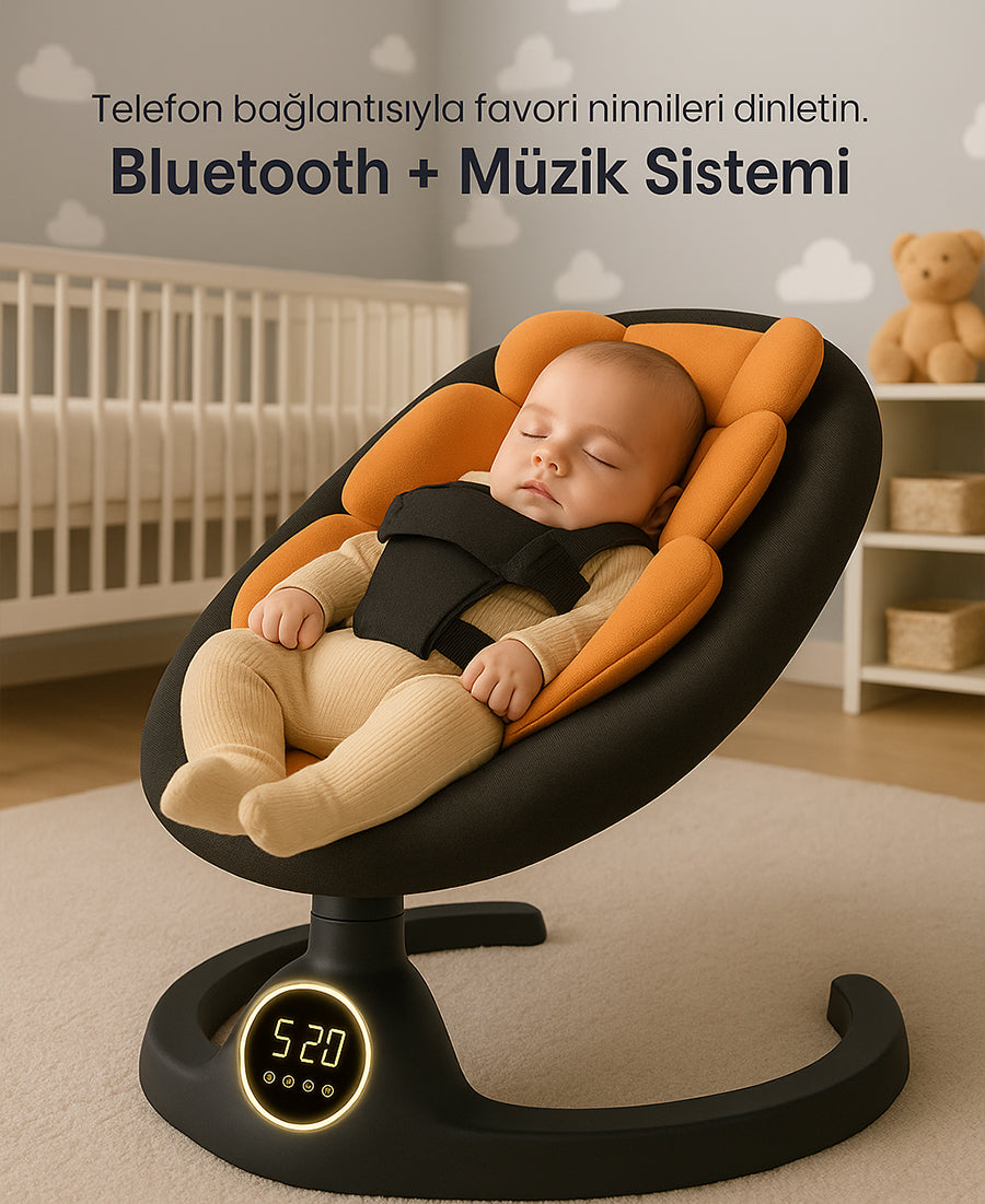 Mioji Baby 4 Otomatik Salıncaklı Bebek Sandalyesi ile Bebeğiniz Güvende, Siz Rahat! 5 kademeli salınım sistemiyle bebeğinizi sakinleştirir, uykuya geçişini kolaylaştırır. Omurga dostu yapısı, müzik ve Bluetooth özellikleriyle konforu teknolojiyle buluşturur.