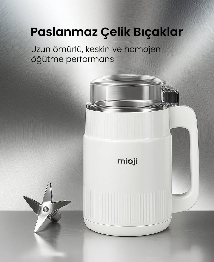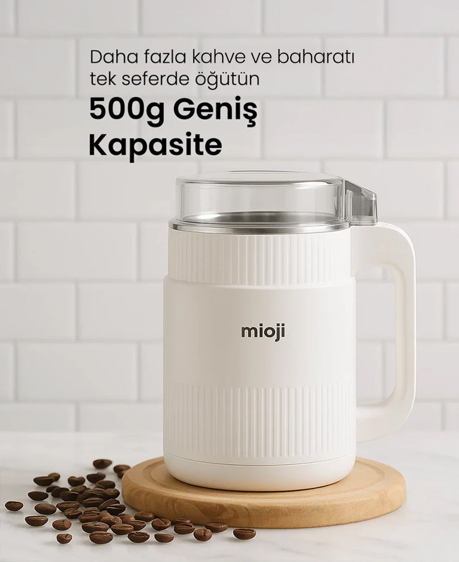 Mioji Mio CG34, 500W gücüyle kahve çekirdekleri ve baharatları hızlı ve verimli bir şekilde öğütür.
