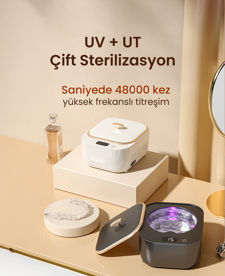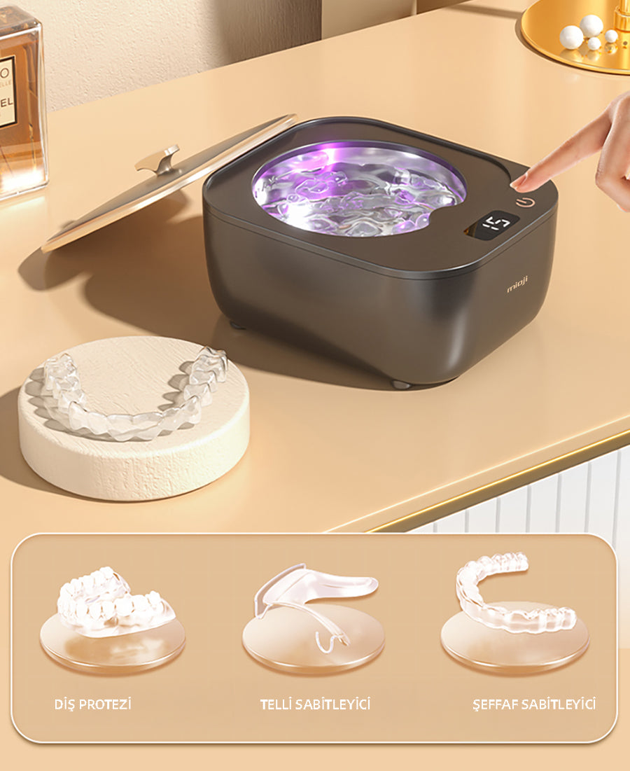 Hijyenin Yeni Standardı: UV+UT Çift Etkili Derin Temizlik Diş protezleri, şeffaf plaklar, sabitleyiciler ve küçük aksesuarlar için geliştirilmiş kompakt bir hijyen çözümüdür. 48kHz ultrasonik titreşimle en ince aralıklara ulaşır, UV sterilizasyon teknolojisi ile %99,99 bakteriyi yok eder.