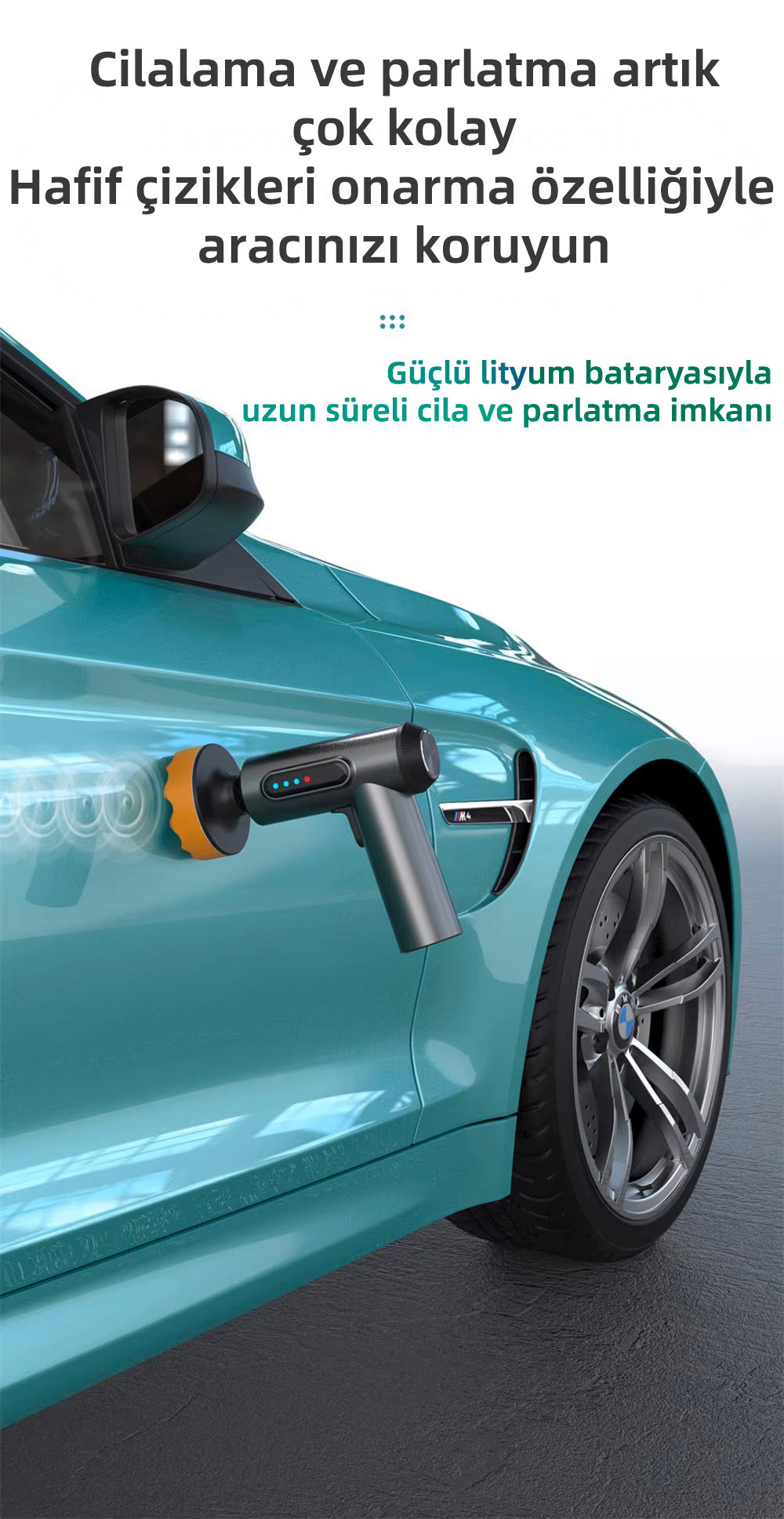 Gücünü Hisset, Işıltıyı Yakala! 2000mAh bataryasıyla kablosuz kullanım sunan, ergonomik tasarımı ve çeşitli başlık seçenekleriyle araç cilalama işlemini hızlı ve etkili bir şekilde yapan taşınabilir bir cilalama makinesidir.