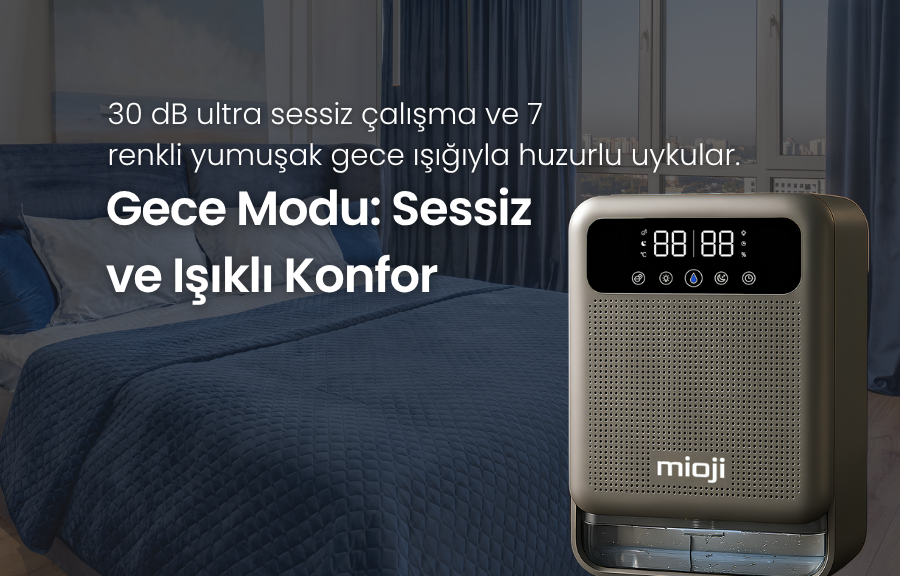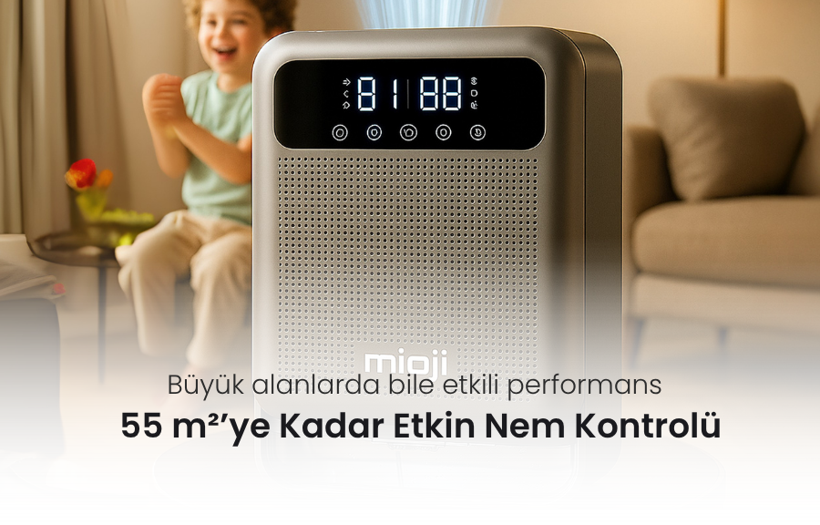Akıllı Konfor: Sessiz, Etkili ve Şık Nem Alma 55 m²’ye kadar olan alanlarda aktif nem kontrolü sağlayarak ortamınızı hem daha sağlıklı hem de daha konforlu hâle getirir.