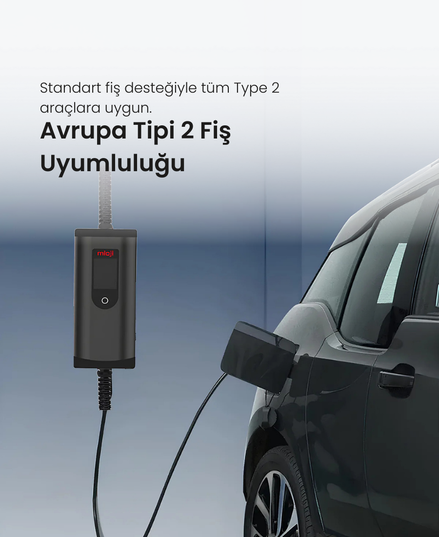 Avrupa standardı Tip 2 fişi sayesinde Mio FC22, çoğu elektrikli araç modeliyle tam uyumluluk sağlar. İster evde ister iş yerinde güvenle kullanarak aracınızı sorunsuz bir şekilde şarj edebilirsiniz.
