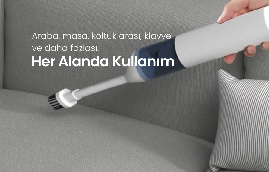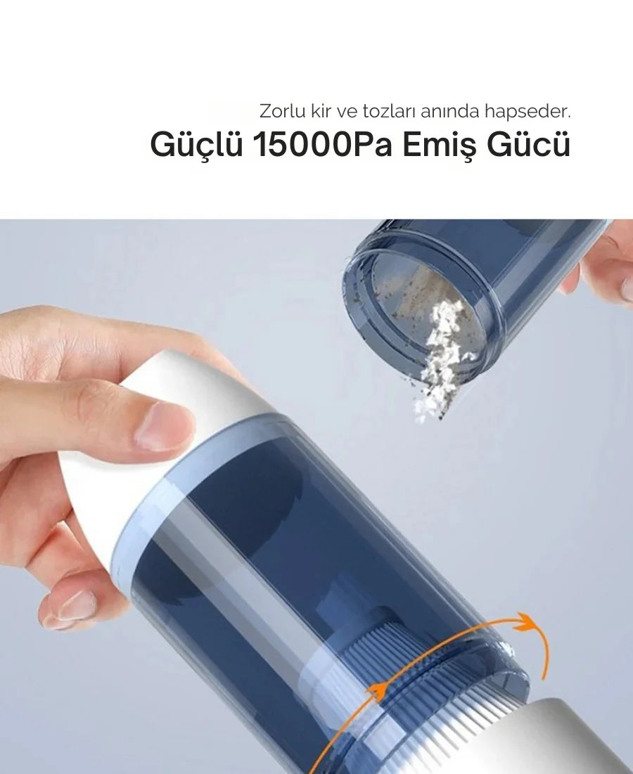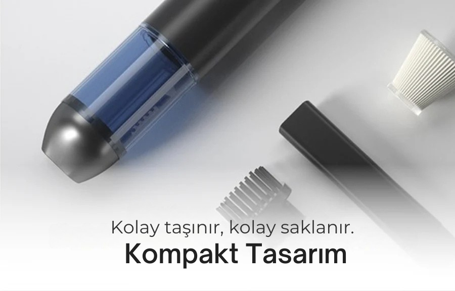 Kompakt ve hafif yapısıyla torpidodan bagaja kadar ulaşır, güçlü emiş performansı sayesinde kırıntılar, tozlar ve araç içi günlük kalıntıları hiçbir köşede barındırmaz. Zahmetsiz temizliği her gün hissettirir.