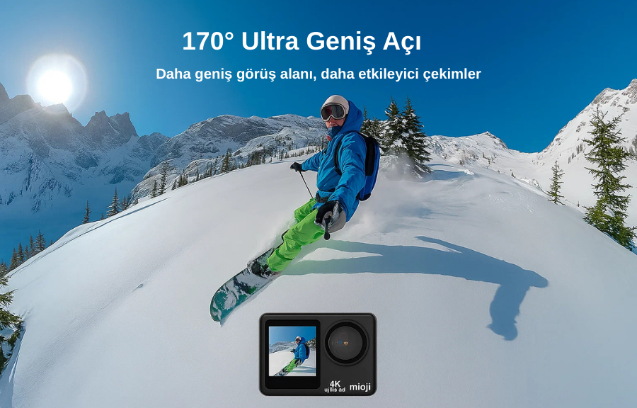 Mioji Action 12X, ultra net 4K çözünürlükte 60 FPS video kaydı ile her anı en akıcı ve gerçekçi şekilde yakalamanı sağlar. Spor, aksiyon veya günlük anılar… Hepsi profesyonel kaliteyle.