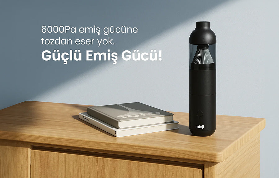 Mioji Mio 3, 6000 Pa yüksek emiş gücü sayesinde toz, kırıntı ve ince partikülleri zahmetsizce temizler. Araç içi, ev ve ofis gibi dar alanlarda maksimum performans sunarak hijyen seviyesini artırır.