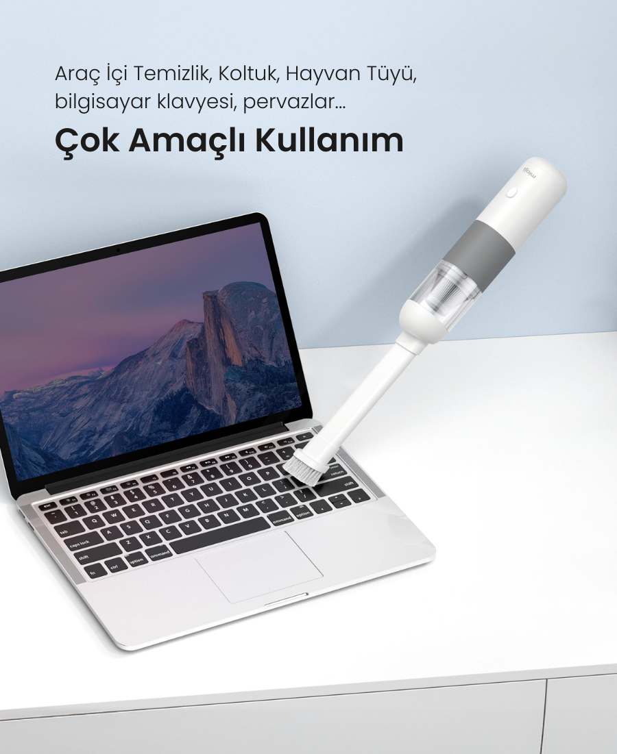 Mioji Mio 3, 6000 Pa yüksek emiş gücü sayesinde toz, kırıntı ve ince partikülleri zahmetsizce temizler. Araç içi, ev ve ofis gibi dar alanlarda maksimum performans sunarak hijyen seviyesini artırır.