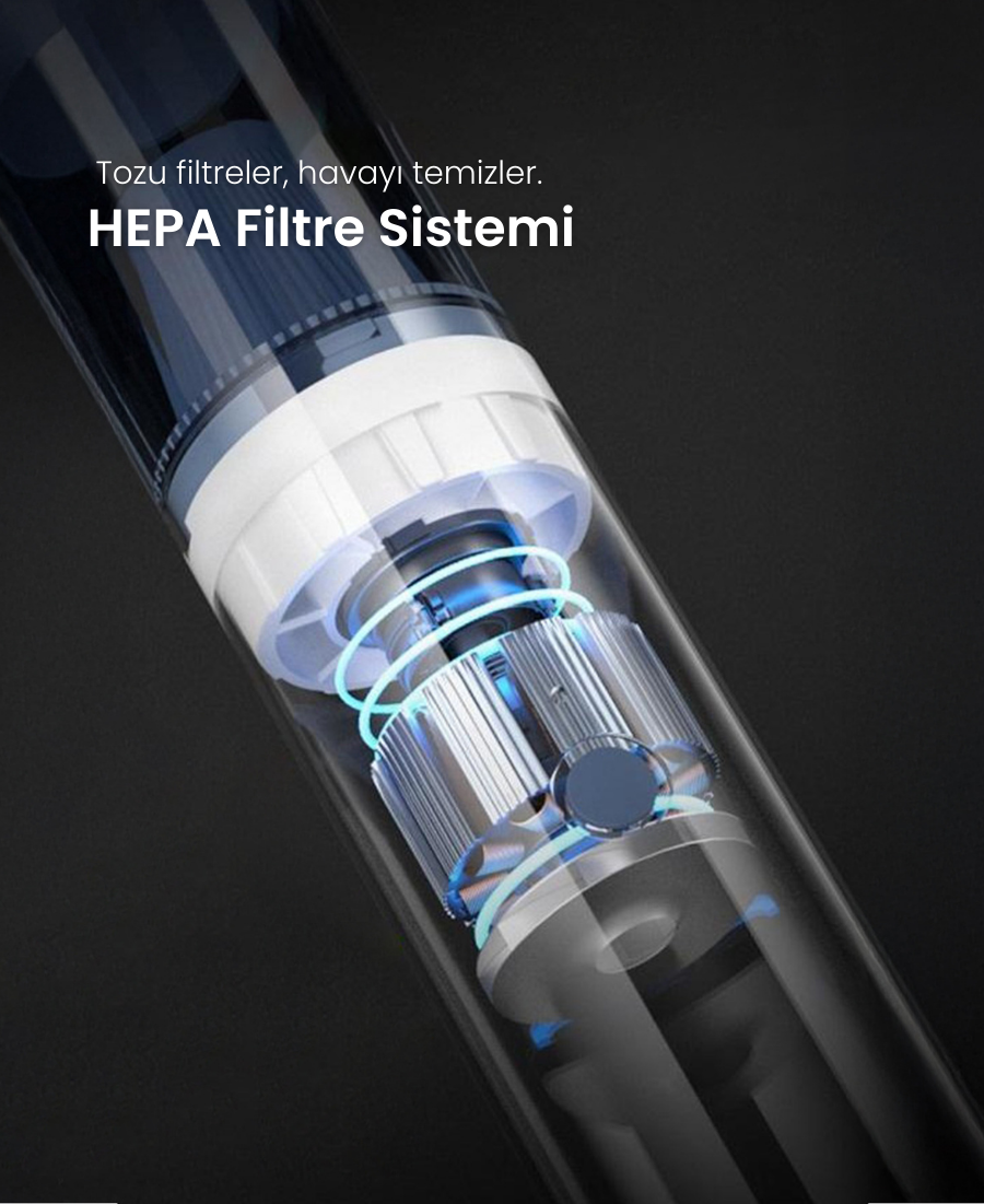 Kompakt ve hafif yapısıyla torpidodan bagaja kadar ulaşır, güçlü emiş performansı sayesinde kırıntılar, tozlar ve araç içi günlük kalıntıları hiçbir köşede barındırmaz. Zahmetsiz temizliği her gün hissettirir.